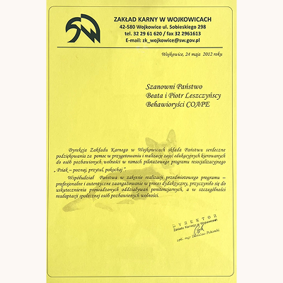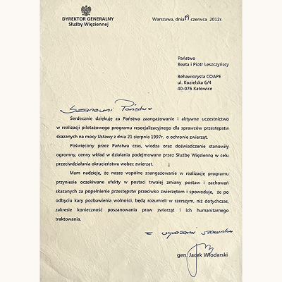do Stowarzyszenia Behawiorystów i Trenerów COAPE i do